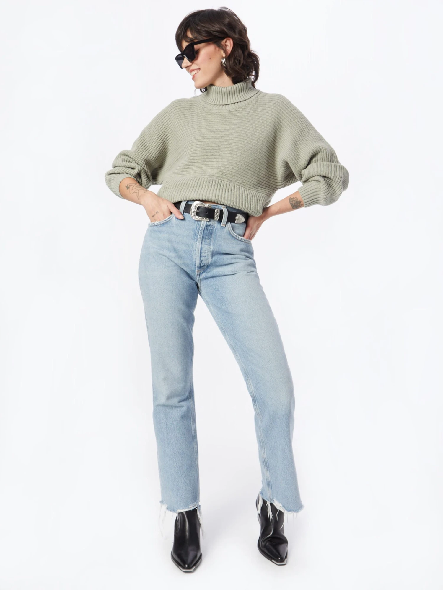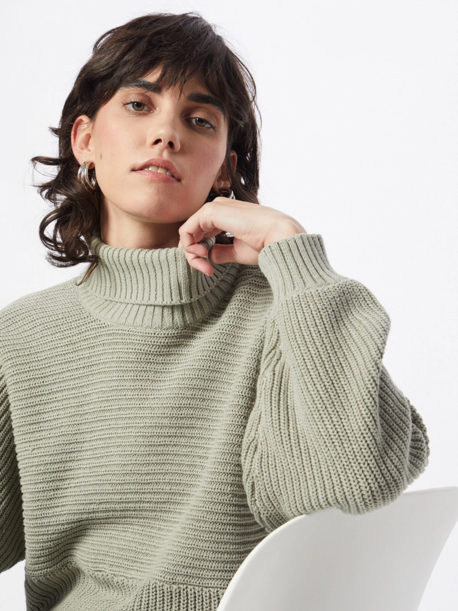 EffenKatoenColGeribbelde kraagGeribd ceintuurtjeOvercut schouderFully fashionedVoelt zacht aanHuidvriendelijk materiaal