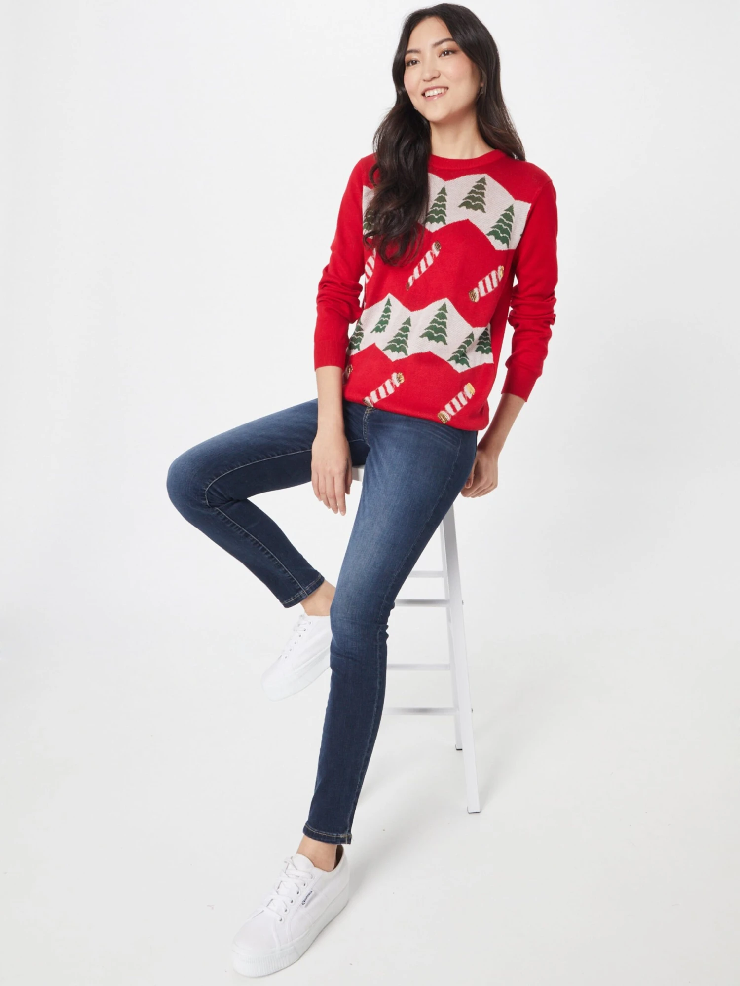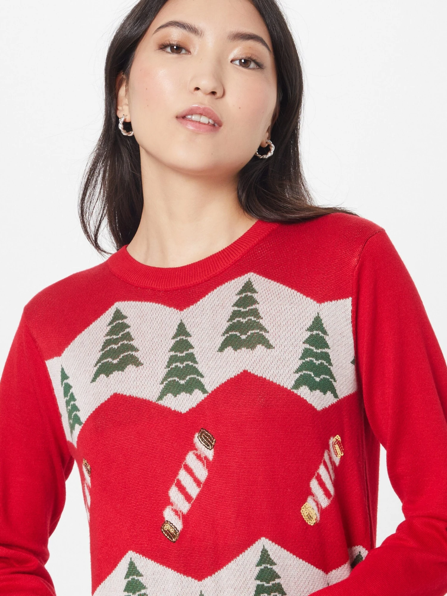MotiefprintViscoseRonde halsPaillettenGeribbelde kraagRechte zoomGeribd ceintuurtjeKerstdesignVoelt zacht aan