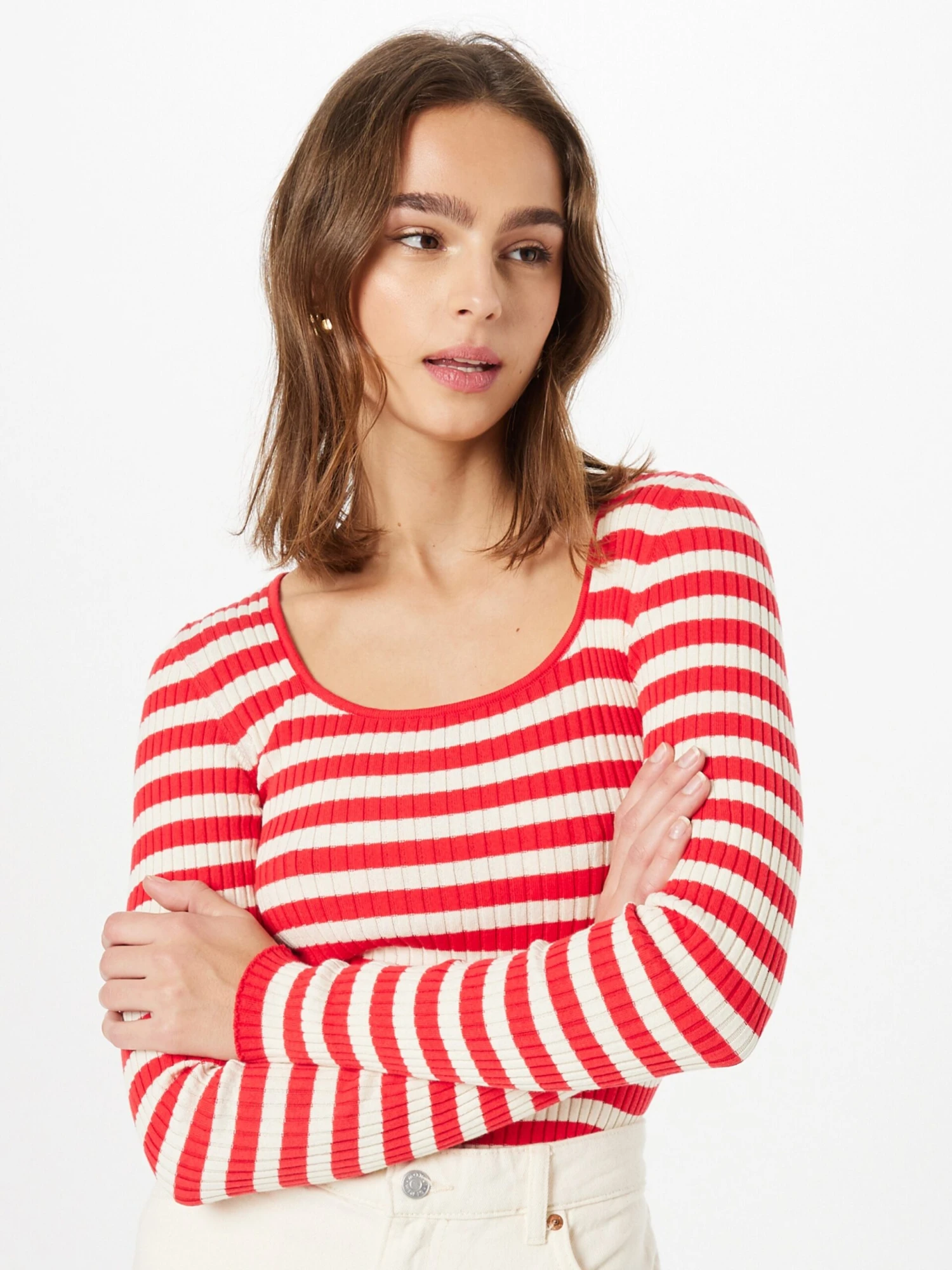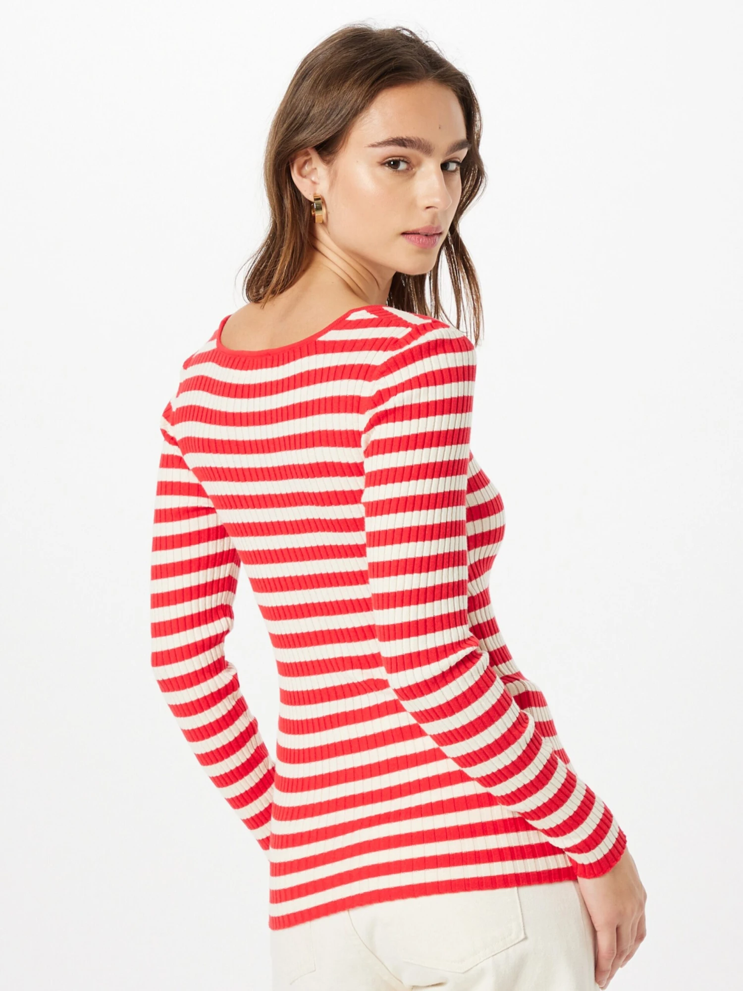 GestreeptKatoenRonde halsGeribbelde kraagGetailleerd modelAll-over patroonMet textuurKatoen (biologisch geteeld)