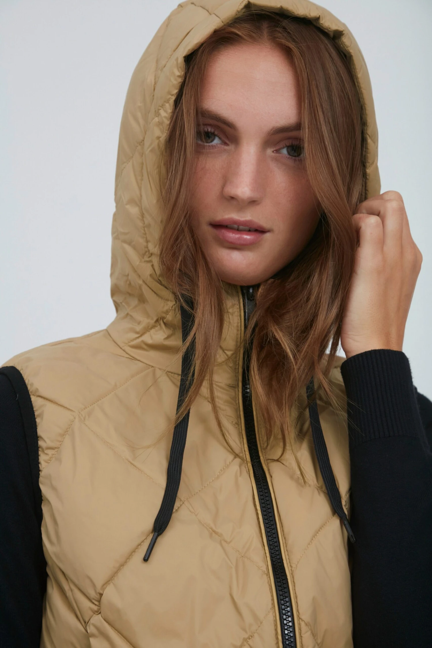 Buitenstof: 100% Polyamide (Nylon®)Binnenvoering: 100% Polyamide (Nylon®)Opvulling: 90% Dons, 10% Veren