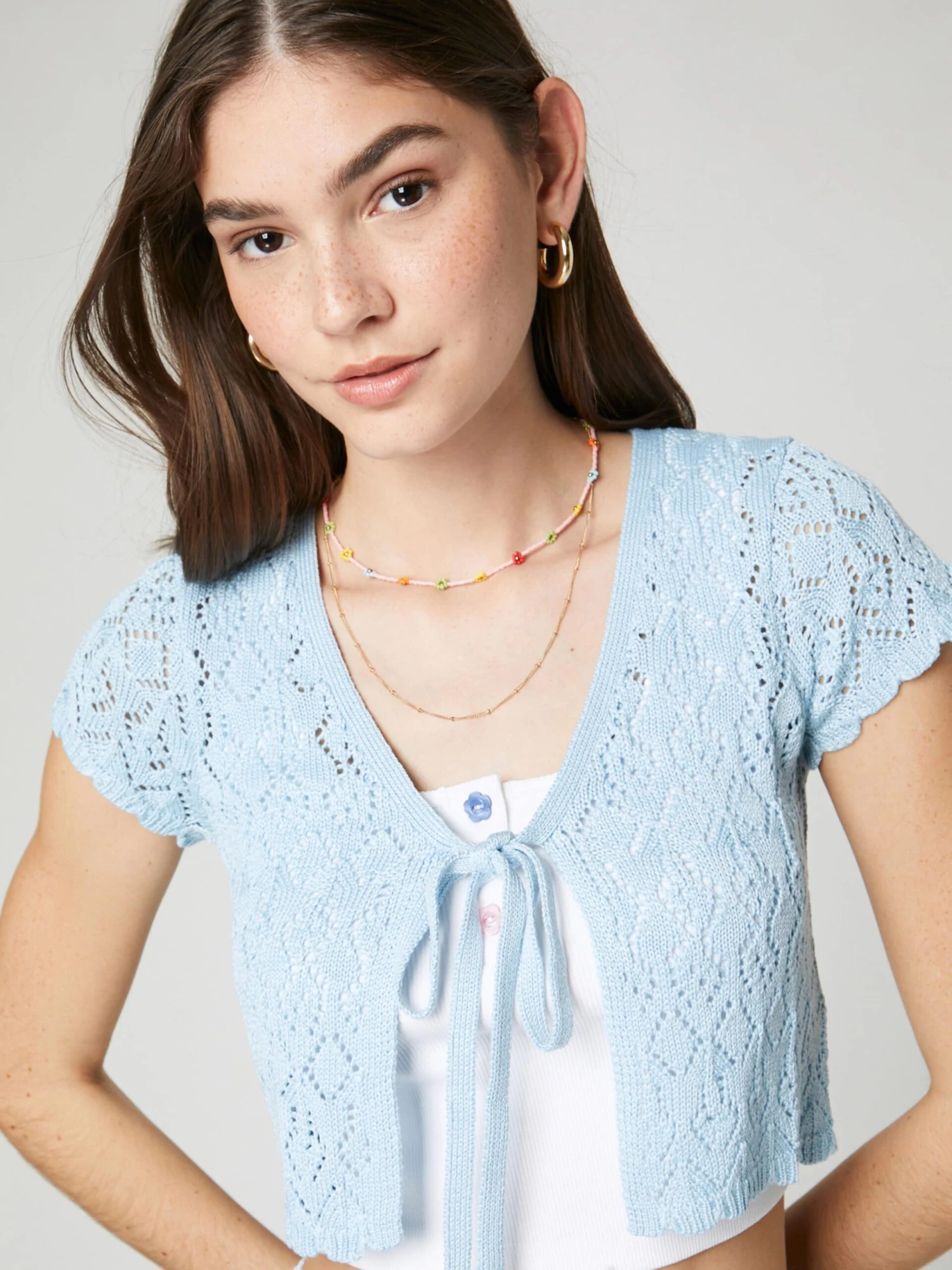 EffenViscoseV-halsMeshOm te knopen/bindenGeschulpte zoomLicht transparantPatroon gebreid
