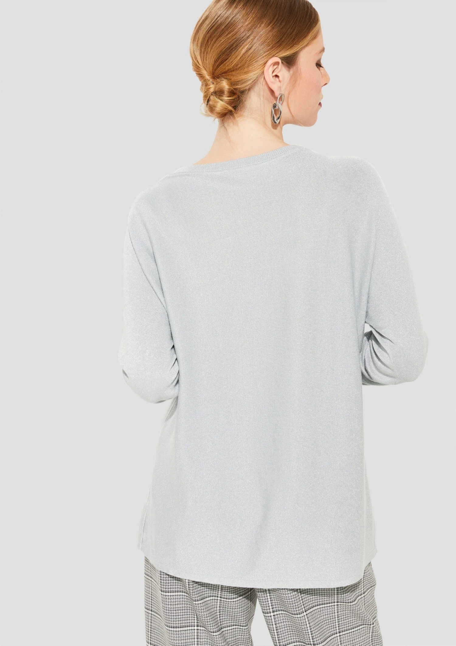 EffenViscoseBoothalsGeribbelde kraagVleermuismouwenRechte zoomGeribd ceintuurtjeGeribbeld gebreidGlitterendMet textuurVoelt zacht aan
