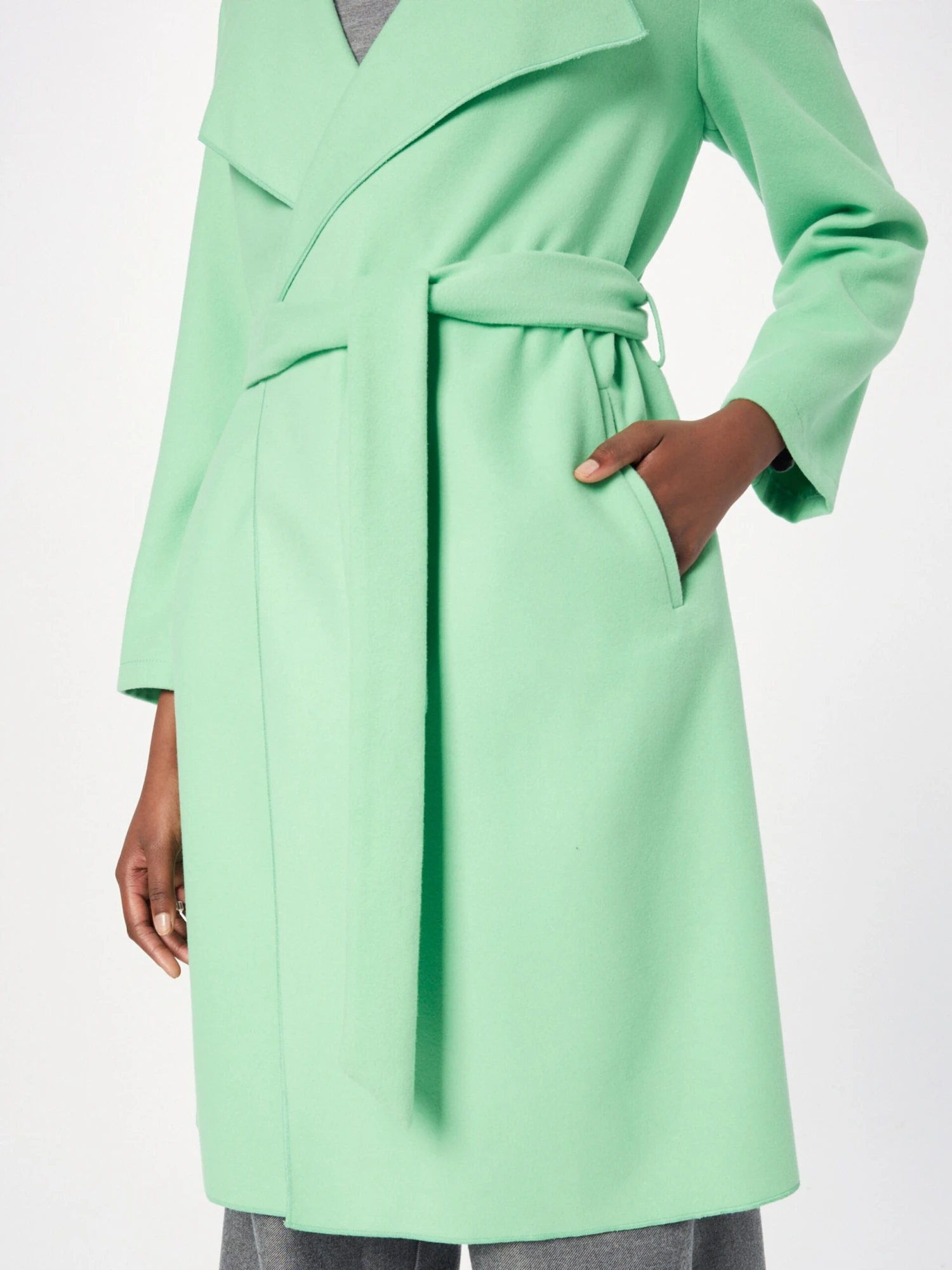EffenRevers kraagZakken aan de zijkantTailleriemOp staal nadenVoelt zacht aanRiemlussenNiet gevoerd