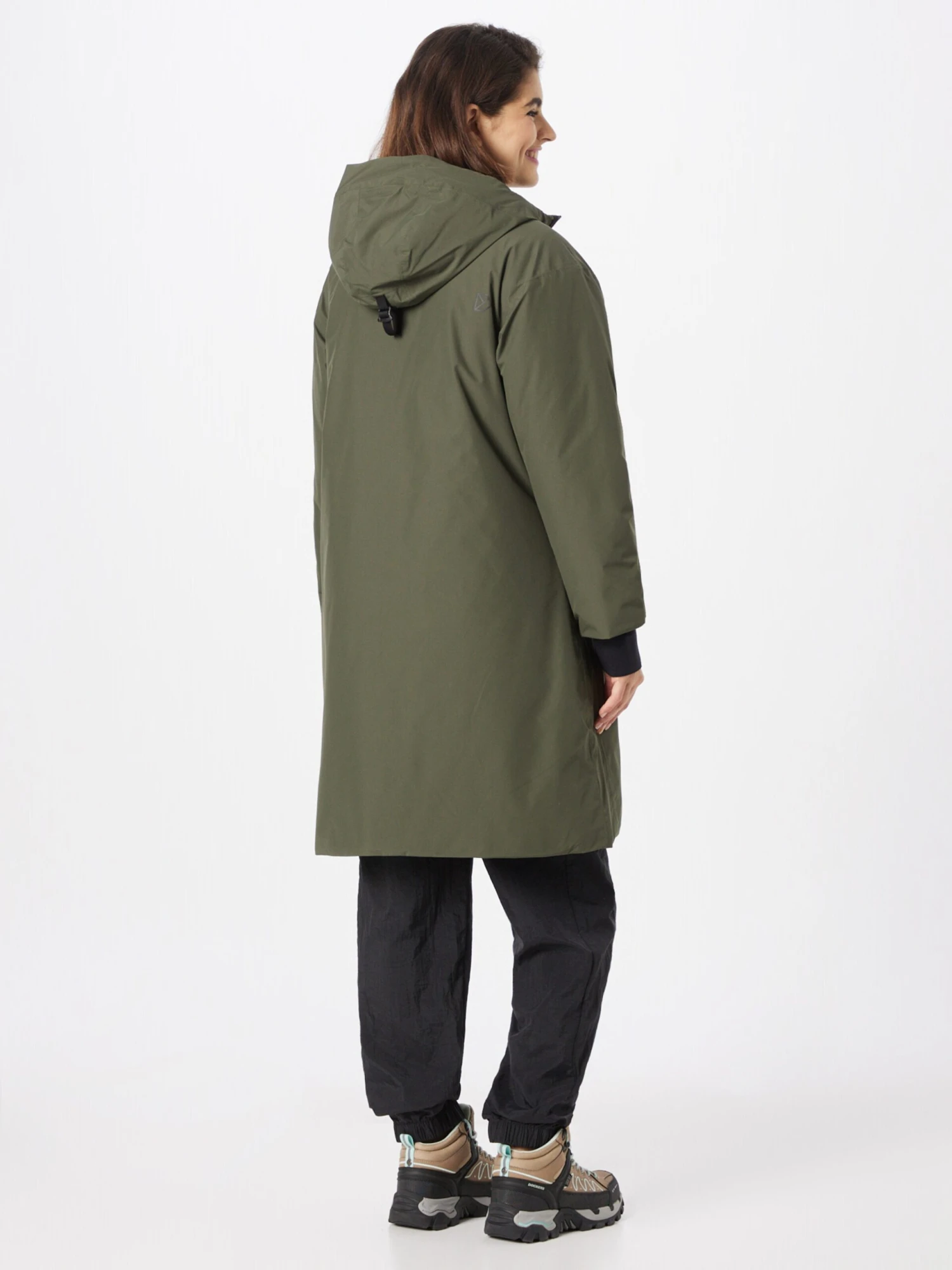 EffenRegenjasCapuchon met opstaande kraagGeribd ceintuurtjeOp staal nadenGladde stofZonder PVCLicht gevoerdRitssluiting