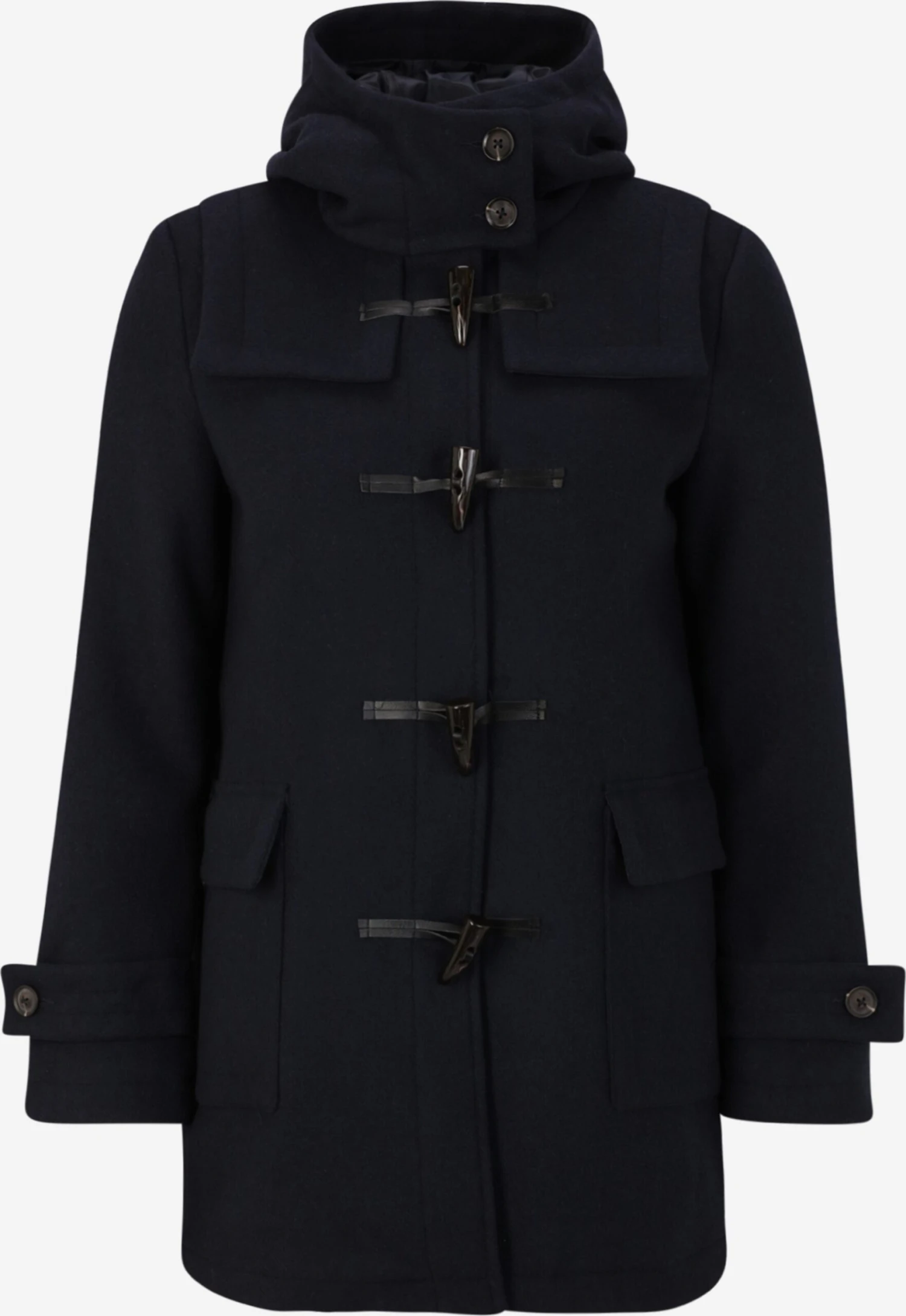 EffenDufflecoatMet capuchonOpzet-/flapzakOp staal nadenZware stofLicht gevoerdHoutje touwtje sluitingGerecycled polyester