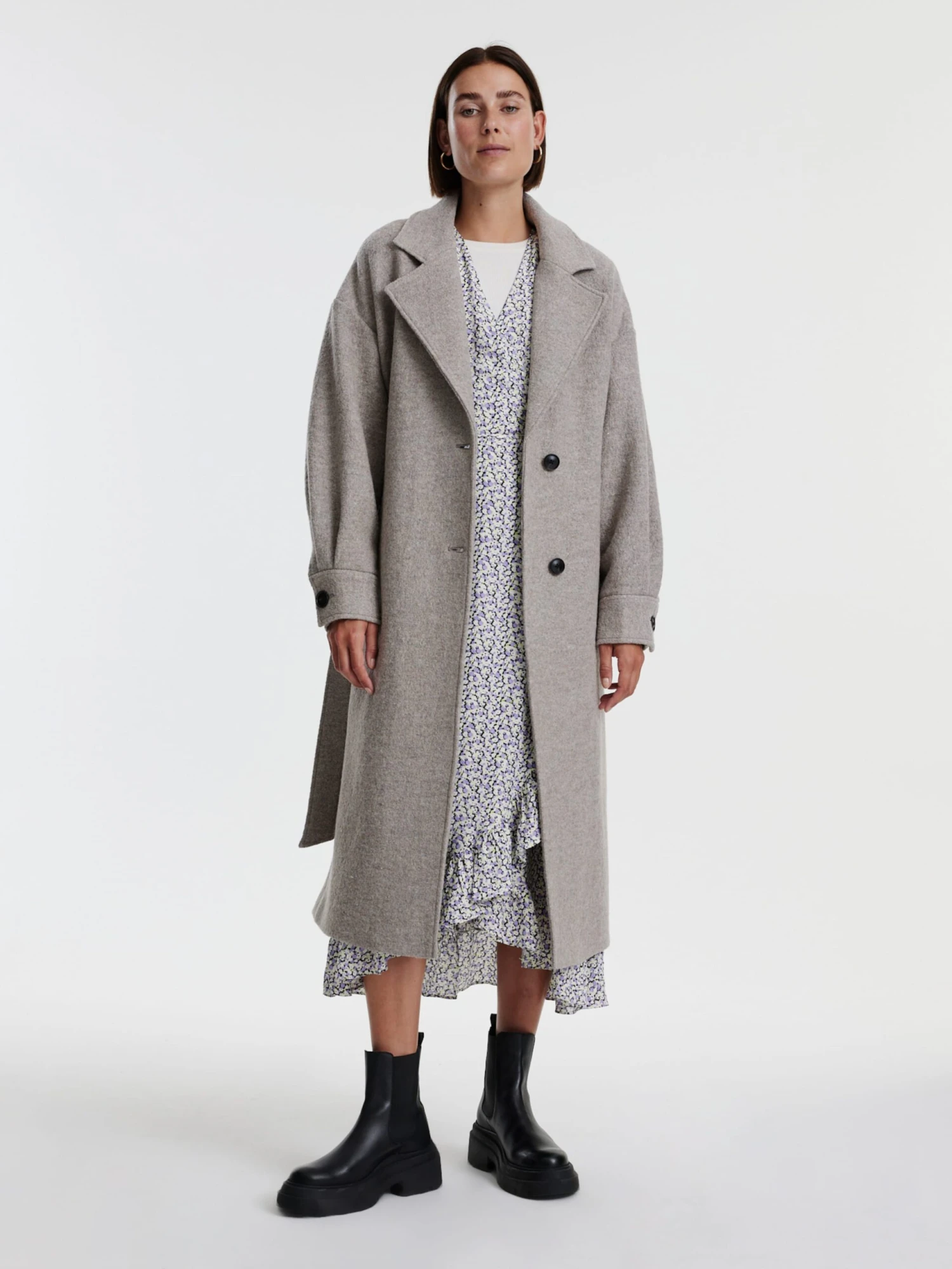 EffenWolViscoseKlassieke mantelGedeeltelijk gevoerdGerecycled wol