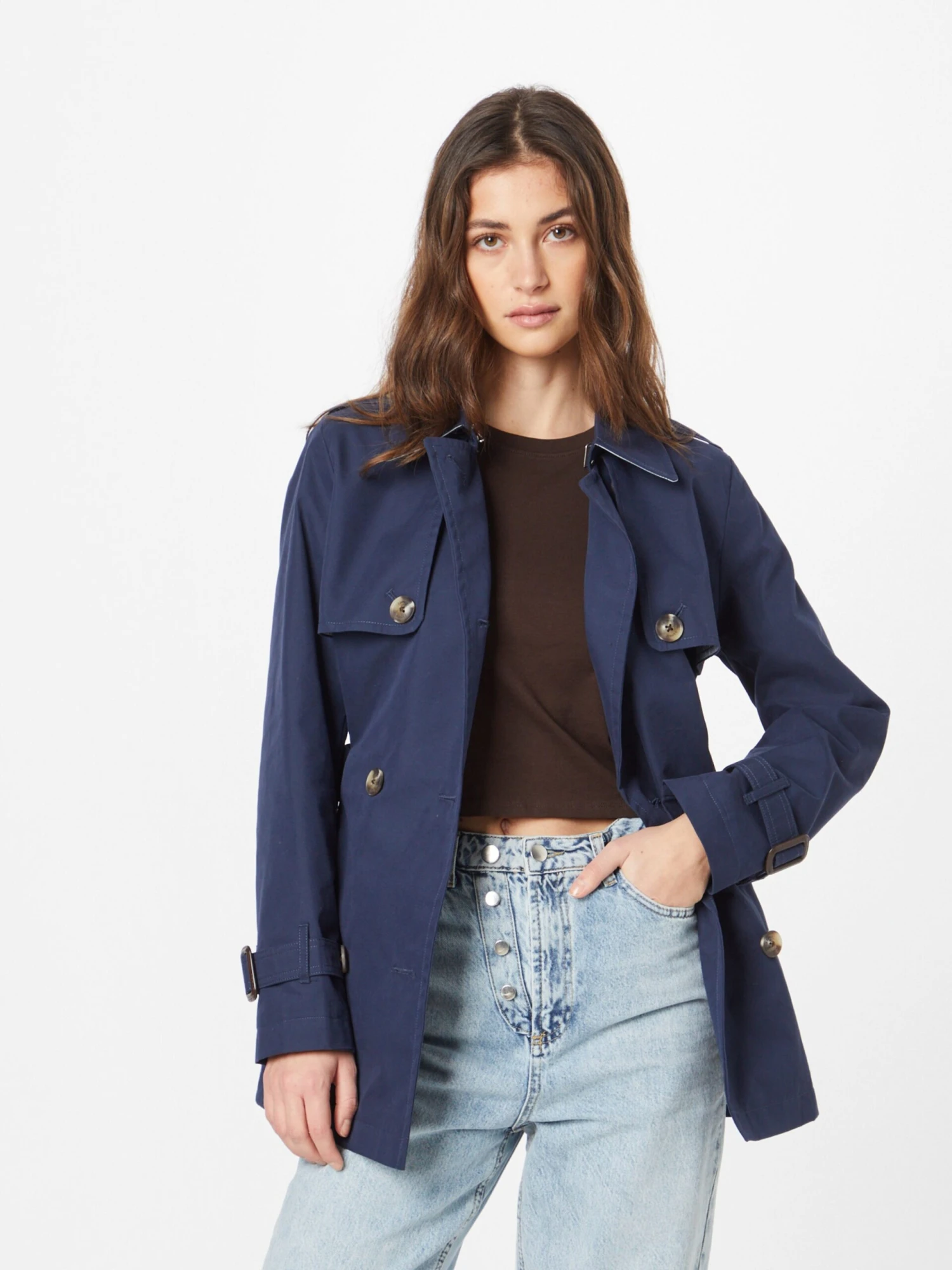 EffenKatoenTrenchcoatGevoerde zoom/randRugnaadTurn-down kraagZakken aan de zijkantKnop sluitingOp staal nadenVoelt zacht aanLicht gevoerdKnoopsluiting