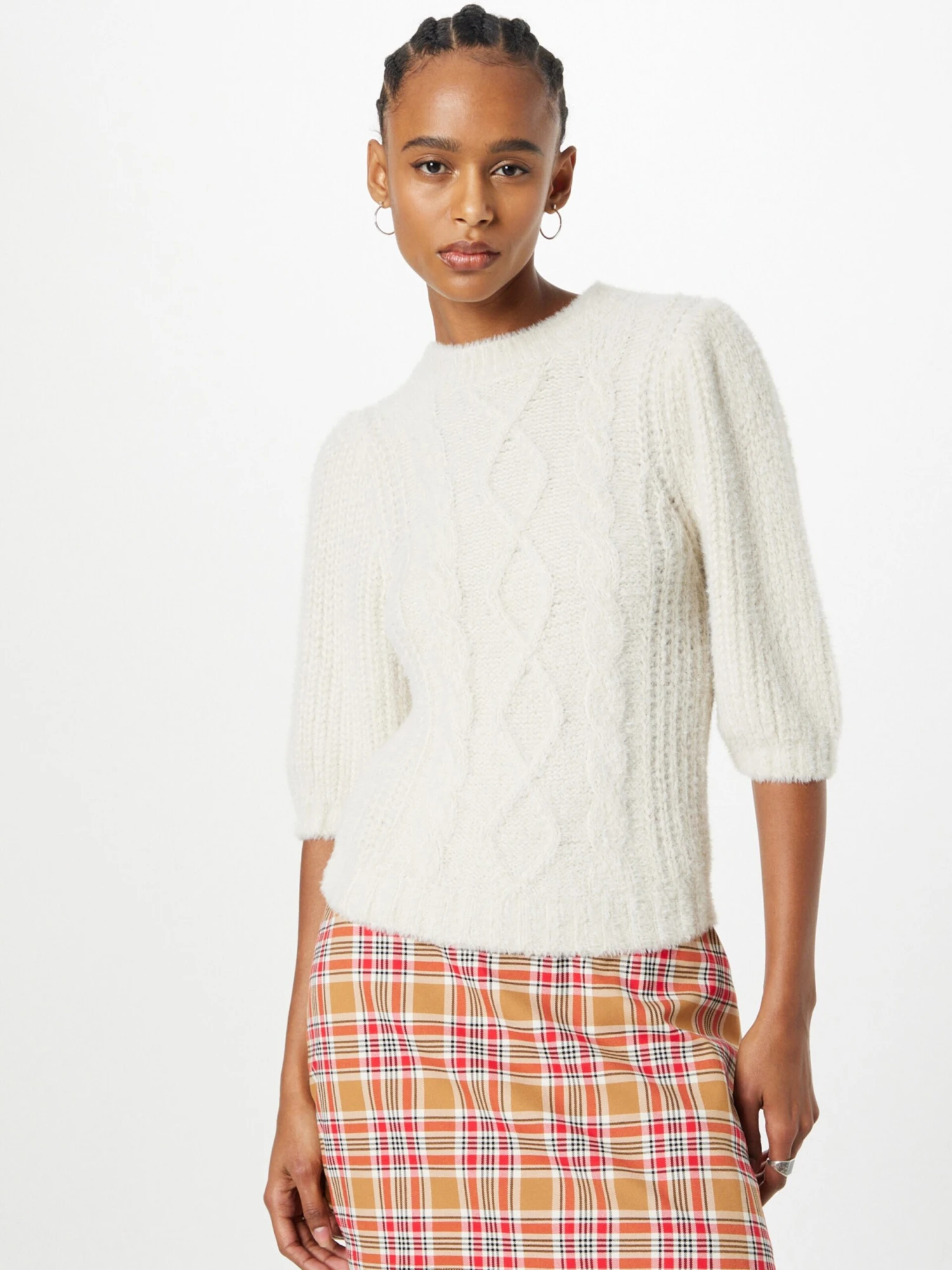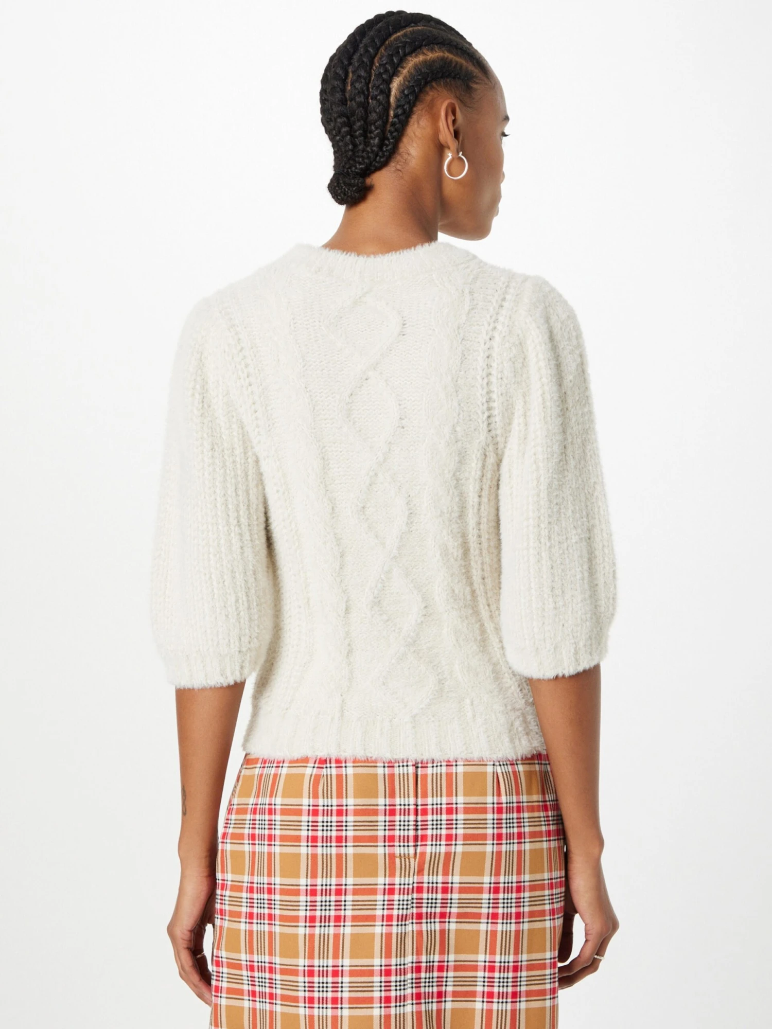 EffenRonde halsGeribbelde kraagRechte zoomVlecht breiMet textuurVoelt zacht aan