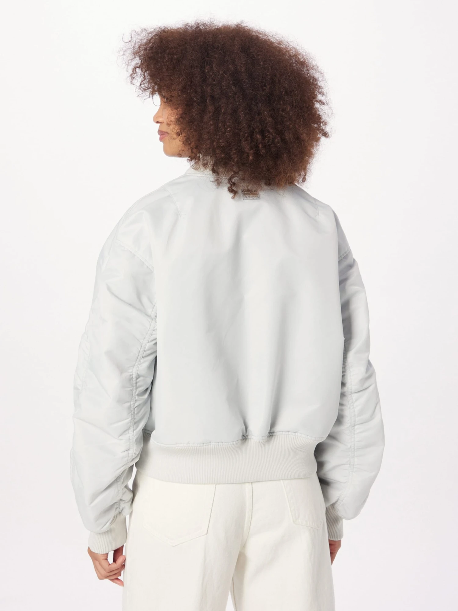 EffenBomberjackGeribbelde kraagGeribd ceintuurtjeOvercut schouderOpzet-/flapzakOp staal nadenLicht gevoerdRitssluiting