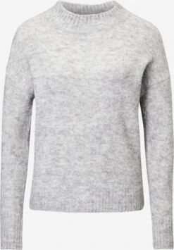 MélangeOpstaande kraagGeribbelde kraagRechte zoomGeribd ceintuurtjeOvercut schouderFully fashionedBuigzame grip