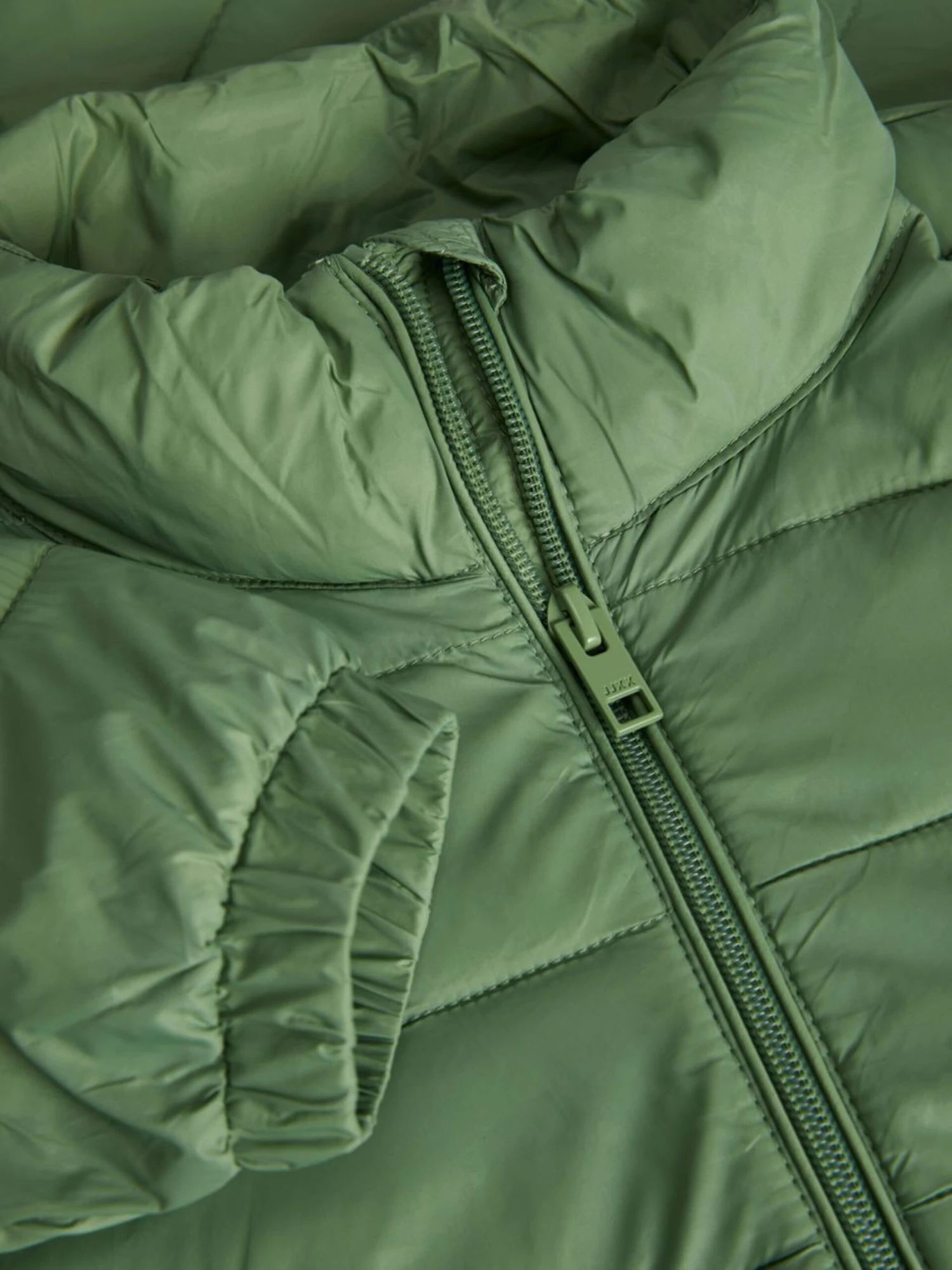 EffenGewatteerde jasElastische taille/zoomRechte zoomStaande kraagRitszakken aan de zijkantStikselsOp staal nadenGladde stofLicht gevoerdRitssluiting