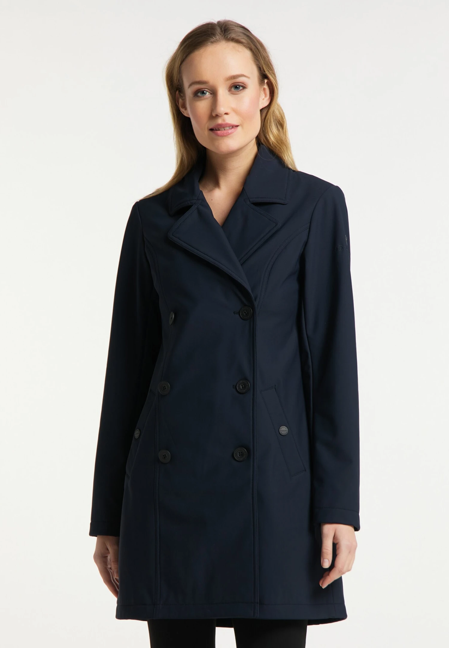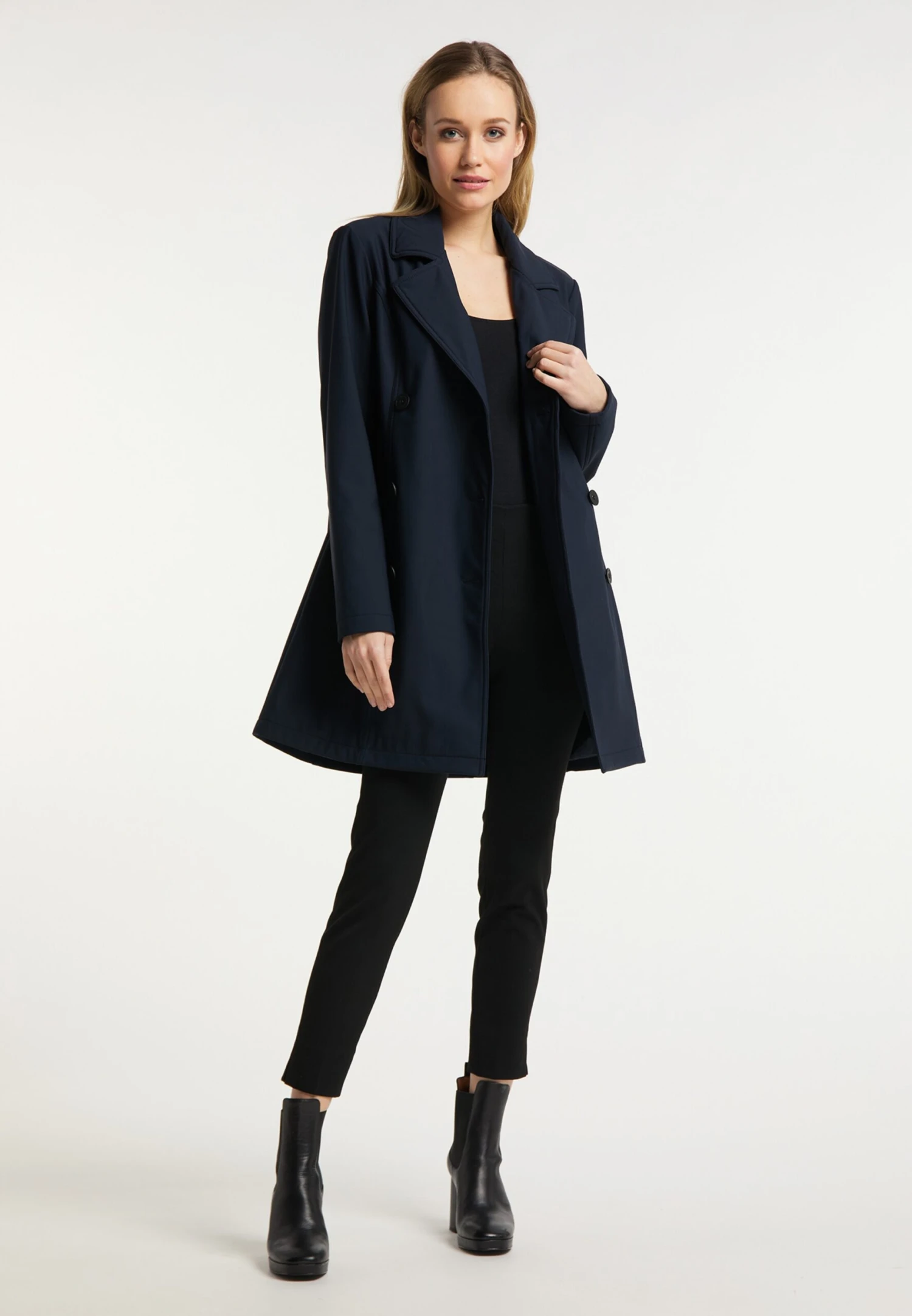 EffenKlassieke mantelSplitKnop placketRevers kraagDeelnadenBinnenzakZakken aan de zijkantOp staal nadenStevige stofWaterafstotendLicht gevoerd