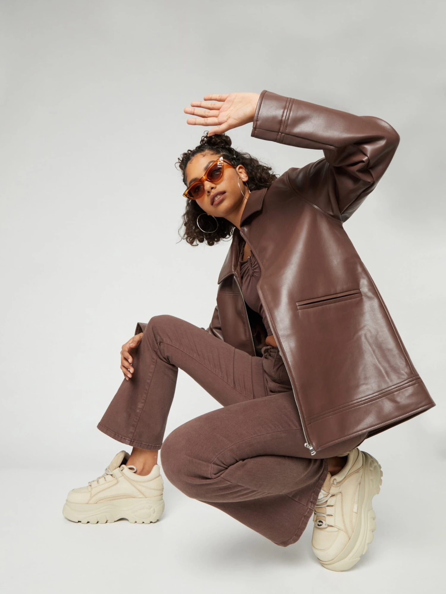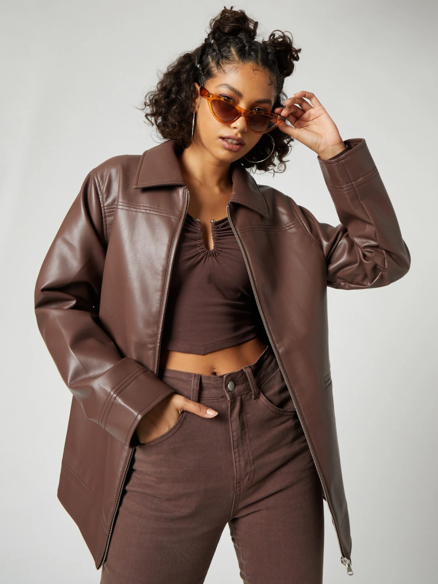 EffenImitatielederTurn-down kraagPaspelzakSiernaadGladde stofLicht gevoerdRitssluiting