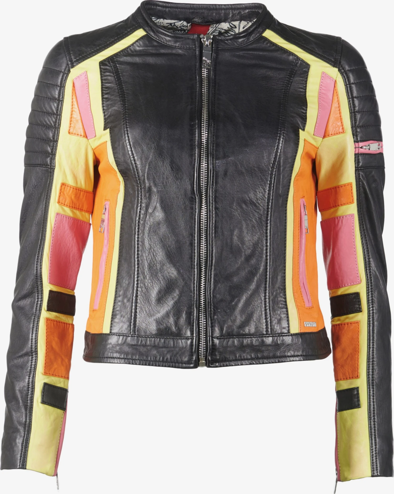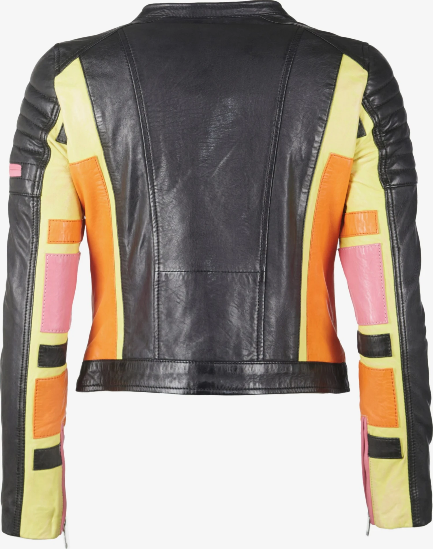 Color-BlockingLeerBikerjackLicht gevoerd