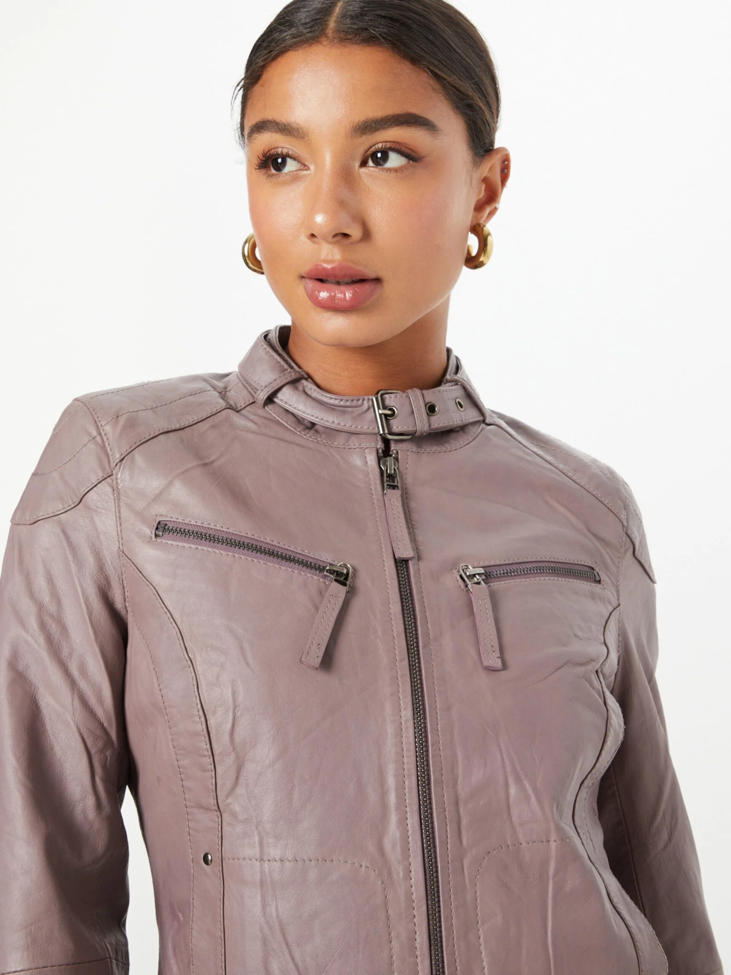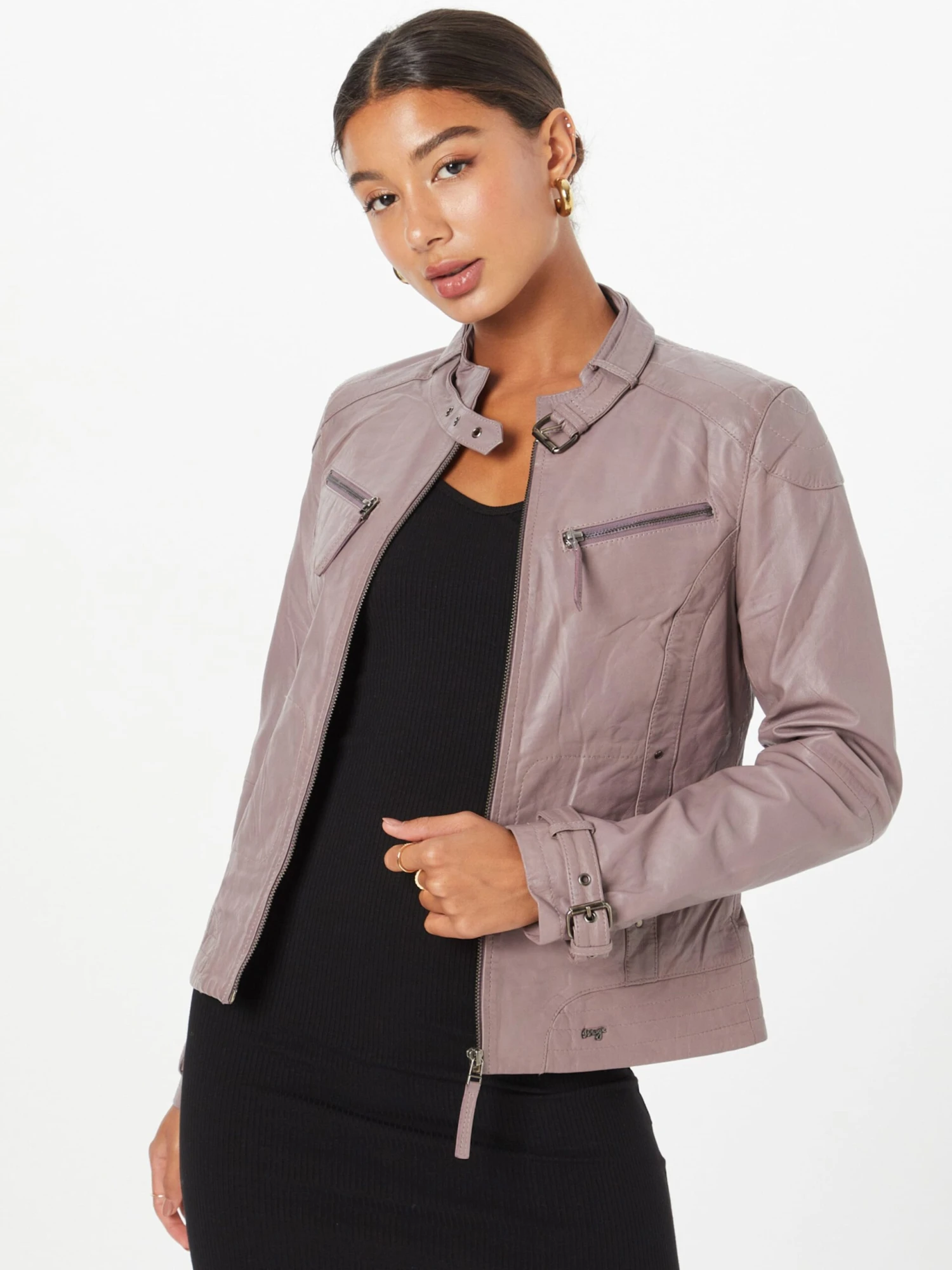 EffenLeerBikerjackRechte zoomBorstzakZakken aan de zijkantLabel plaatjeOp staal nadenLicht gevoerdRitssluiting