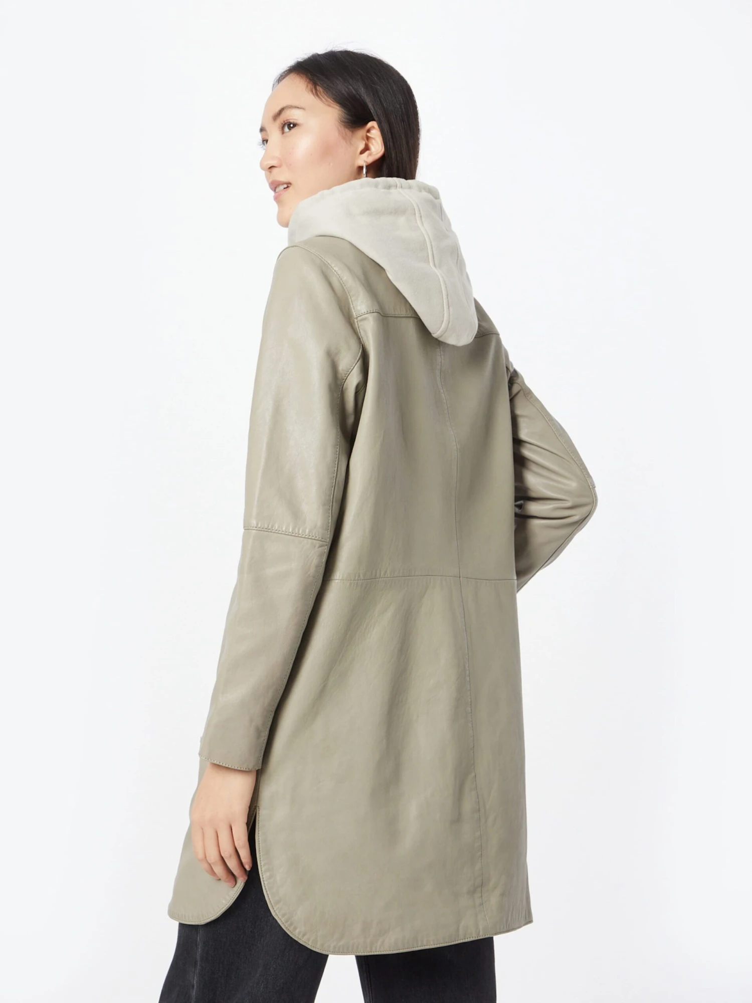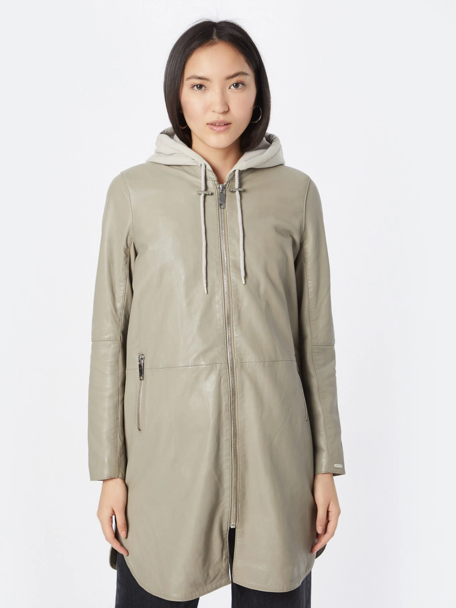 EffenLeerRitssluitingCapuchon met trekkoordGelaagde lookRitszakken aan de zijkantGladde stofLicht gevoerdRitssluiting