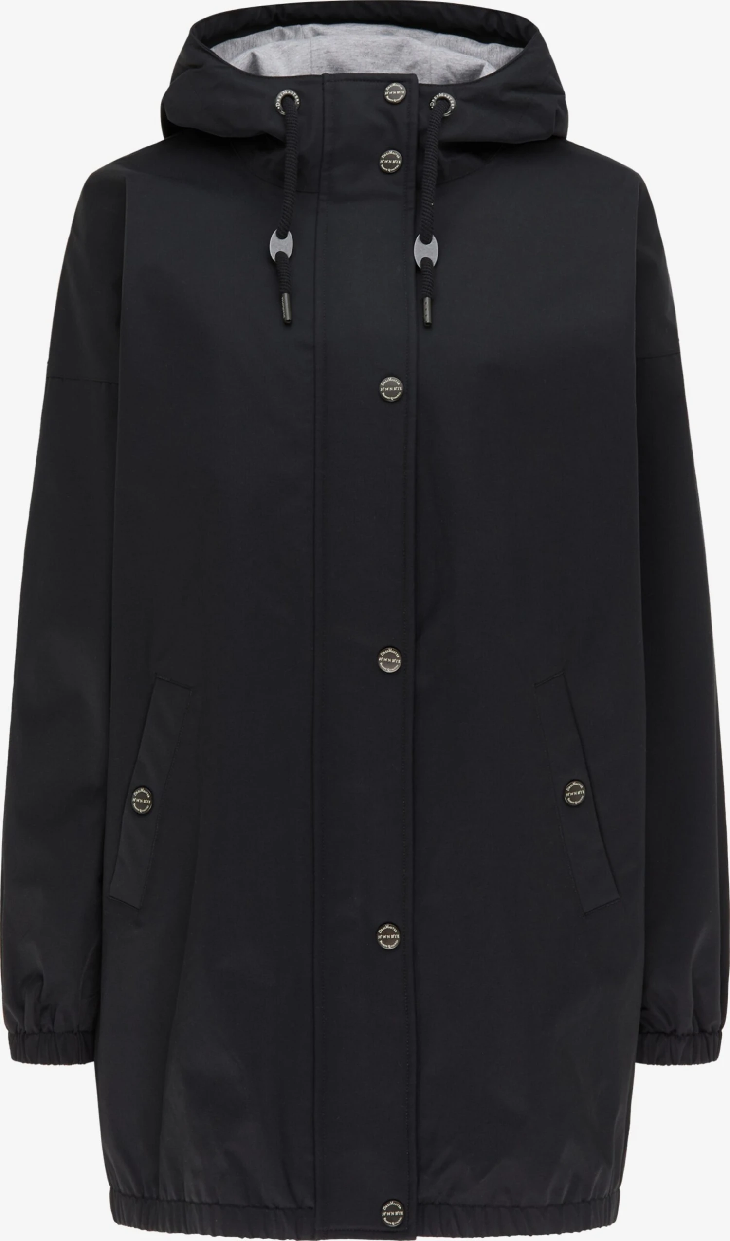 EffenKatoenDrukknopenCapuchon met trekkoordVerborgen ritsZakken aan de zijkantOp staal nadenStevige stofLicht gevoerd