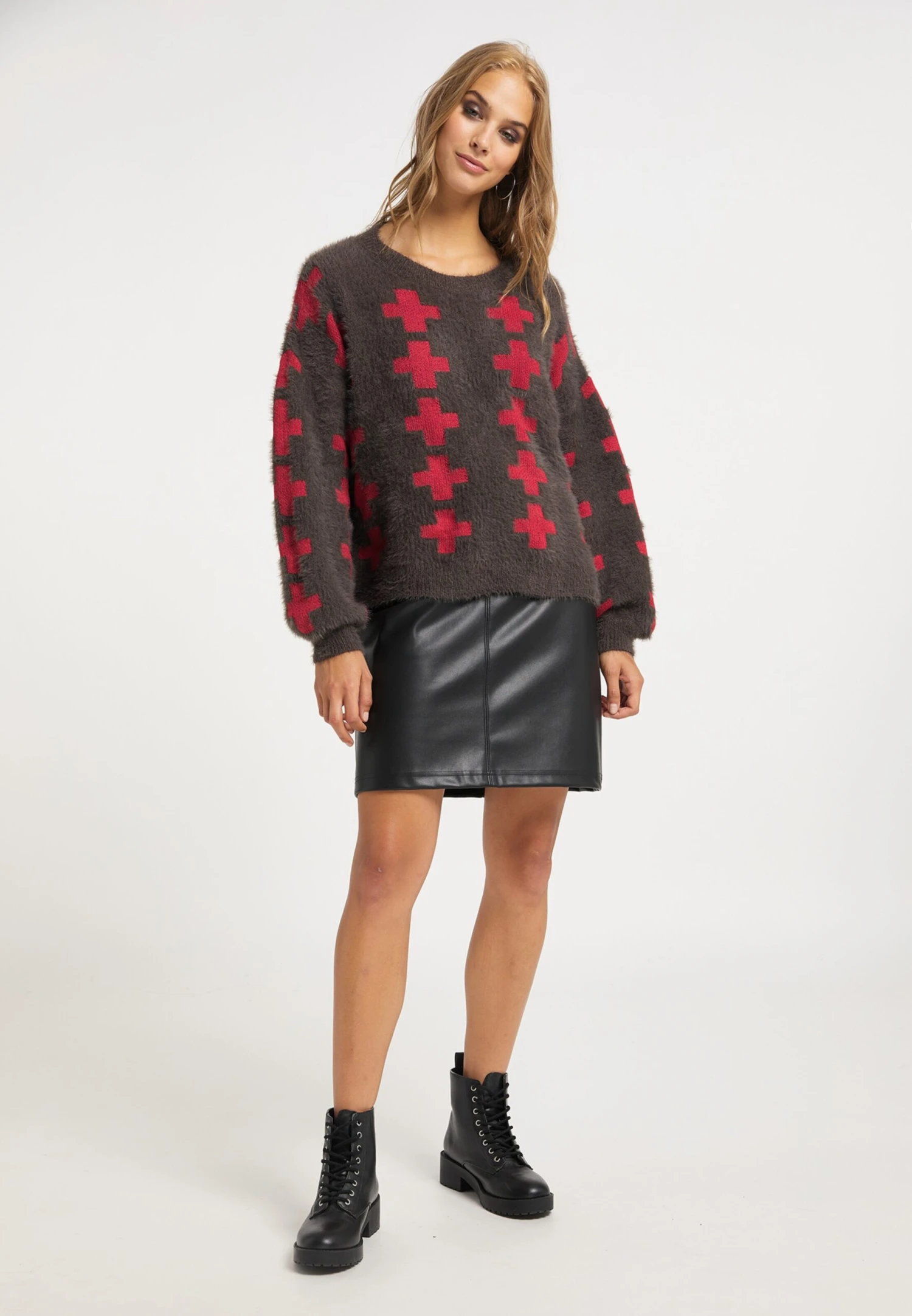 MotiefprintRonde halsGeribd ceintuurtjeOvercut schouderEffect garenVoelt zacht aan