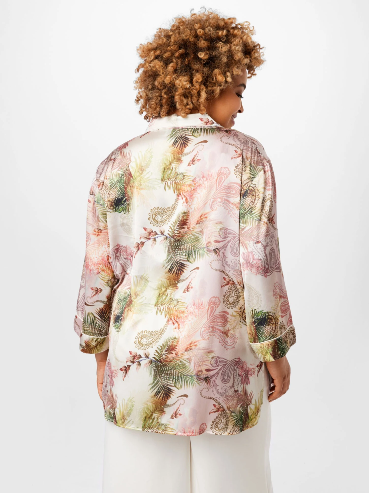 BloemenprintSatijnTurn-down kraagOm te knopen/bindenAll-over patroonGladde stof