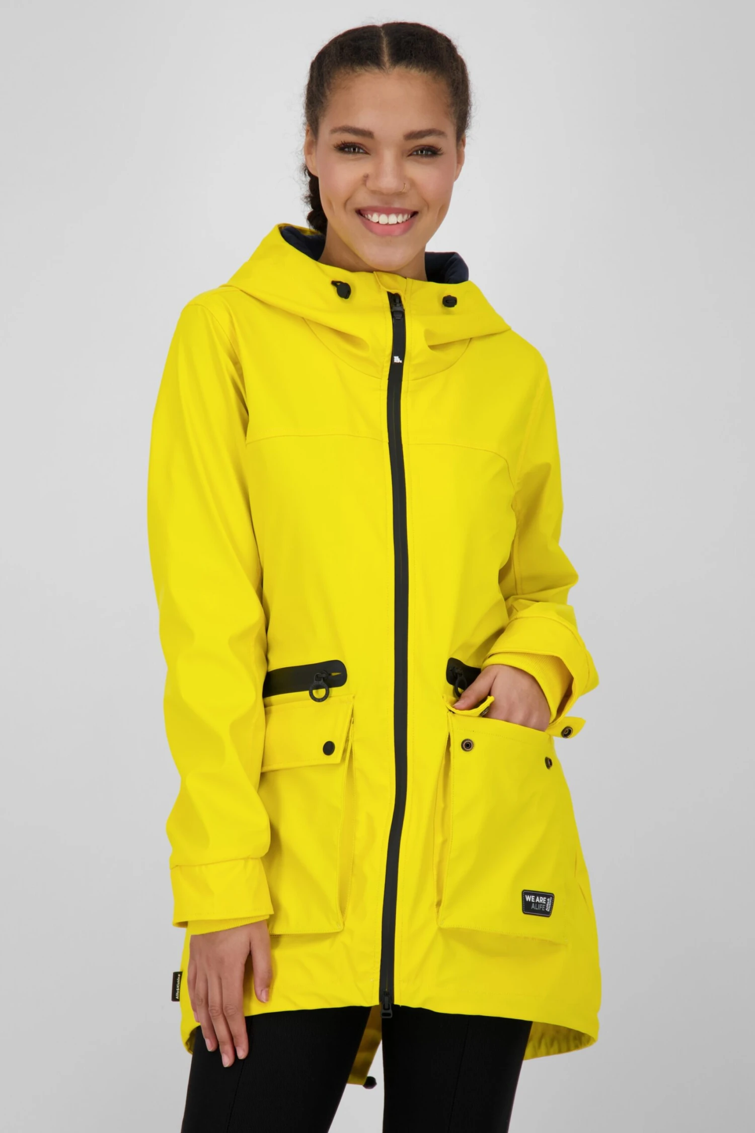 EffenRegenjasRegenjasSplitCapuchon met opstaande kraagCapuchon met trekkoordGeribd ceintuurtjeVerlengd rugpandOpgezette zakkenRitszakken aan de zijkantTrekkoord in de boordLabel patch/label flagWaterafstotendPETA-Approved VeganLicht gevoerdRitssluiting