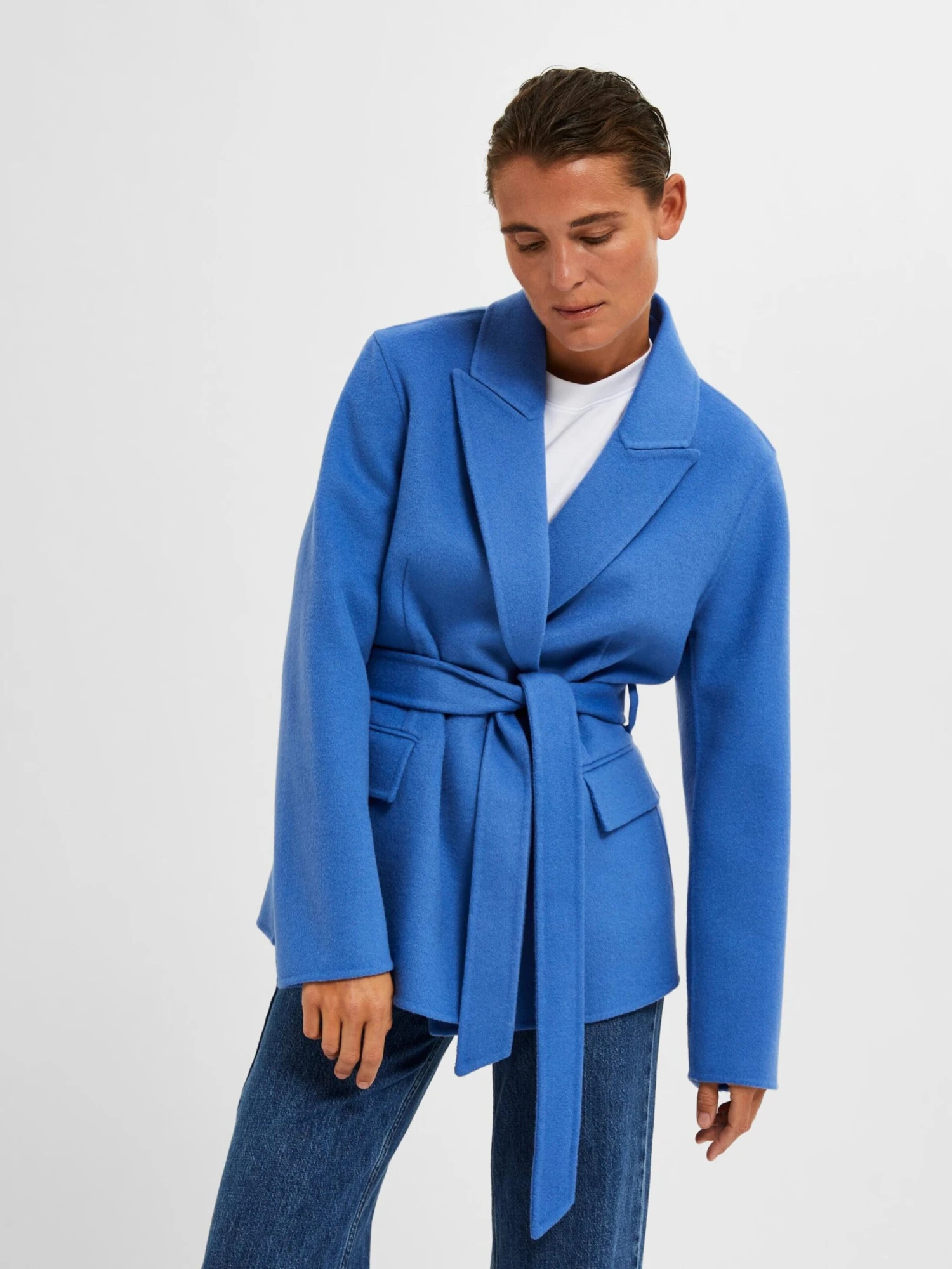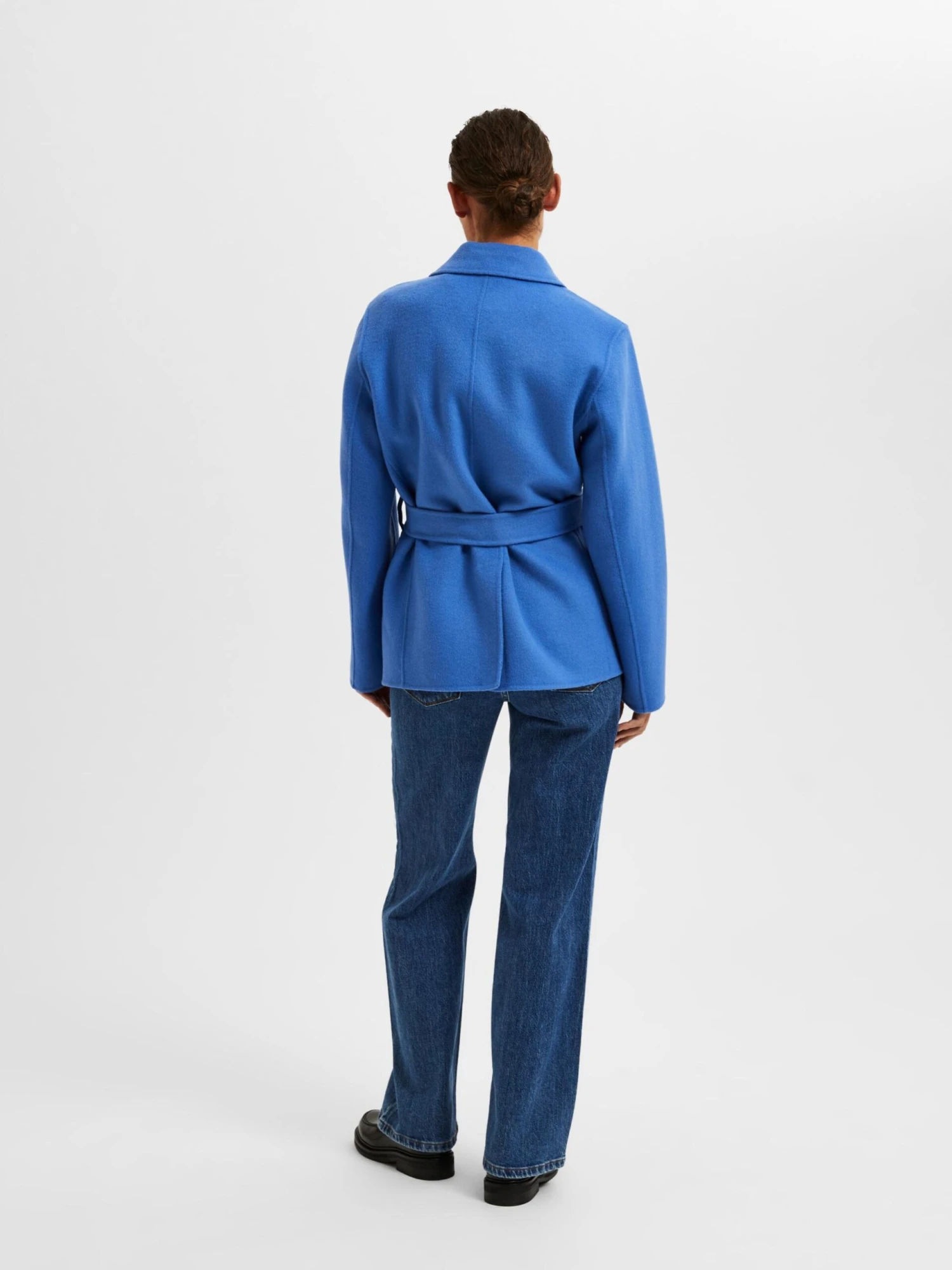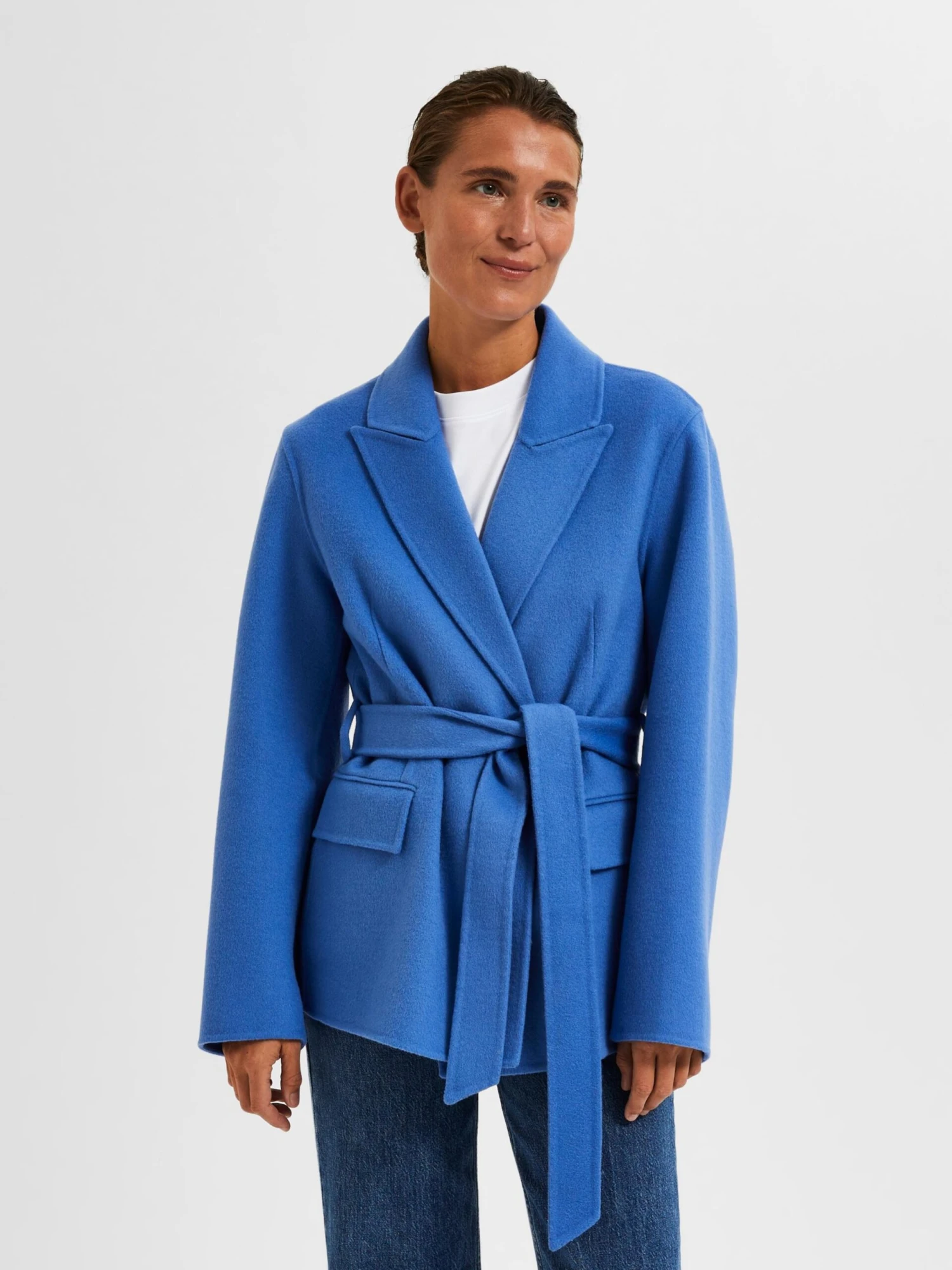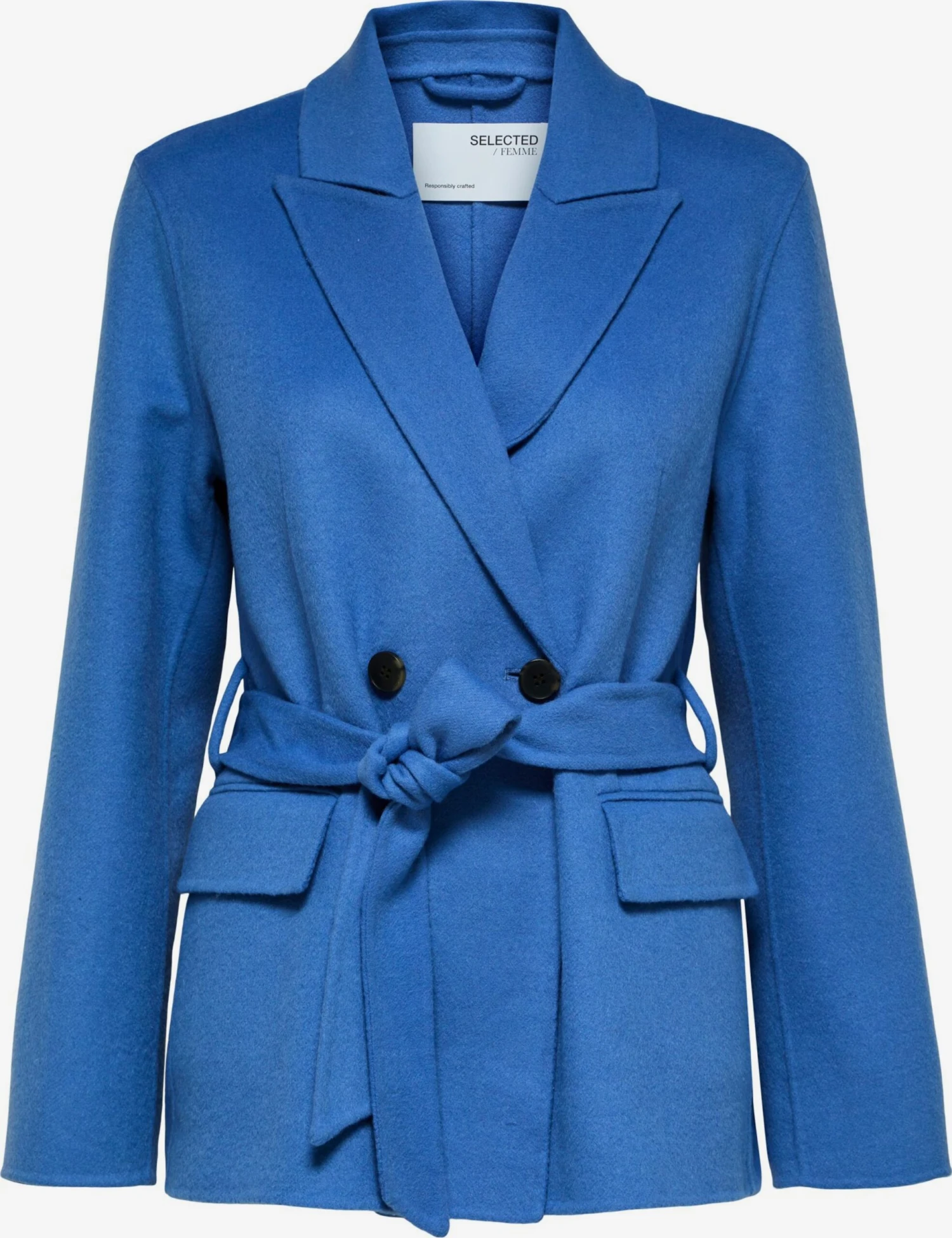 EffenKlassieke mantelStijgende reversOpzet-/flapzakVoelt zacht aanRiemlussenNiet gevoerdKnoopsluitingGerecycled wol