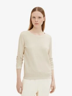 Tom Tailor Fijngebreide Truien Trui Dames Crème / Olijfgroen