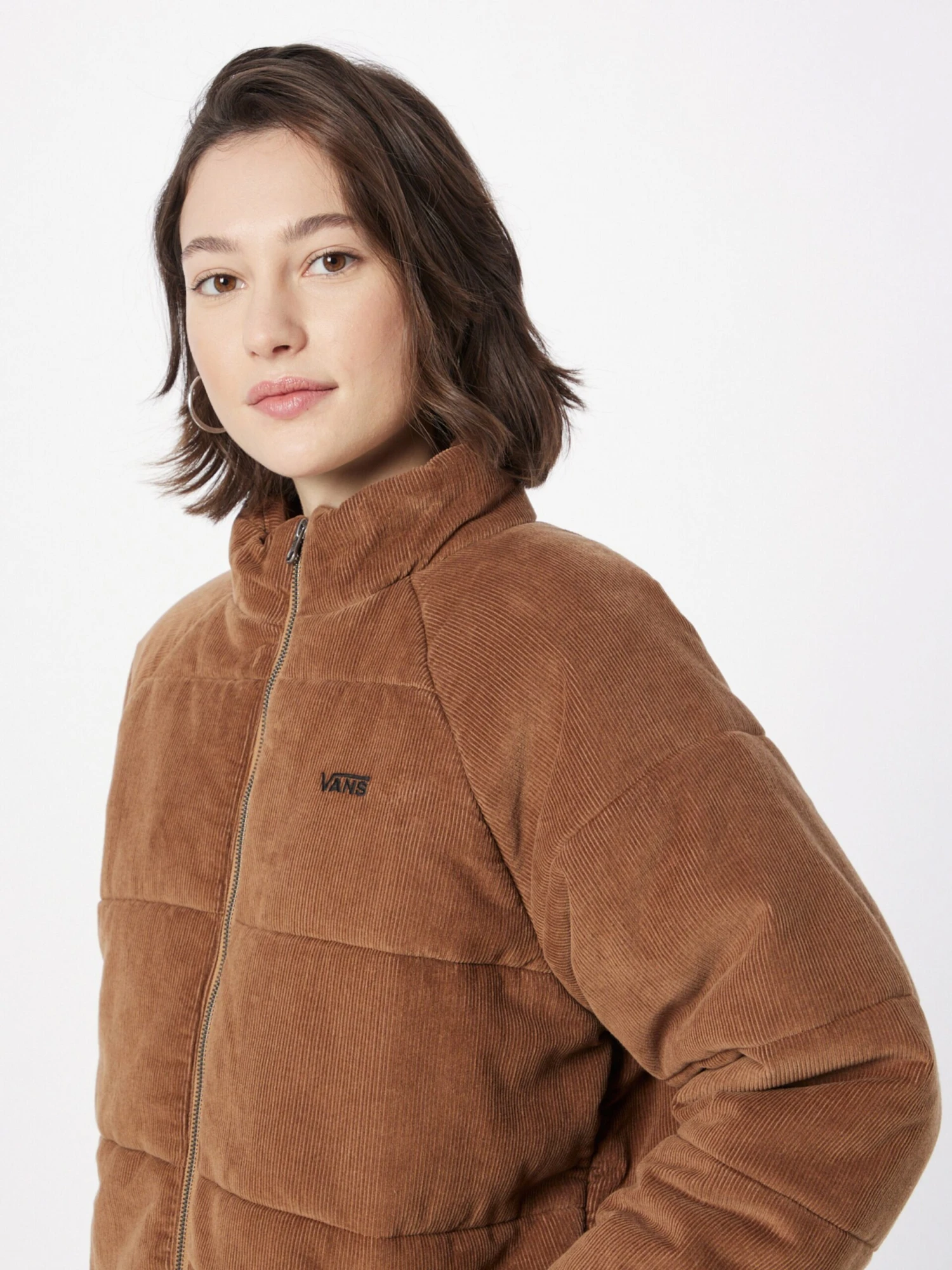 EffenCorduroyGewatteerde jasRechte zoomRaglanmouwenStaande kraagZakken aan de zijkantLabel borduurwerkStikselsOp staal nadenZware stofMet textuurWarm gevoerdRitssluiting
