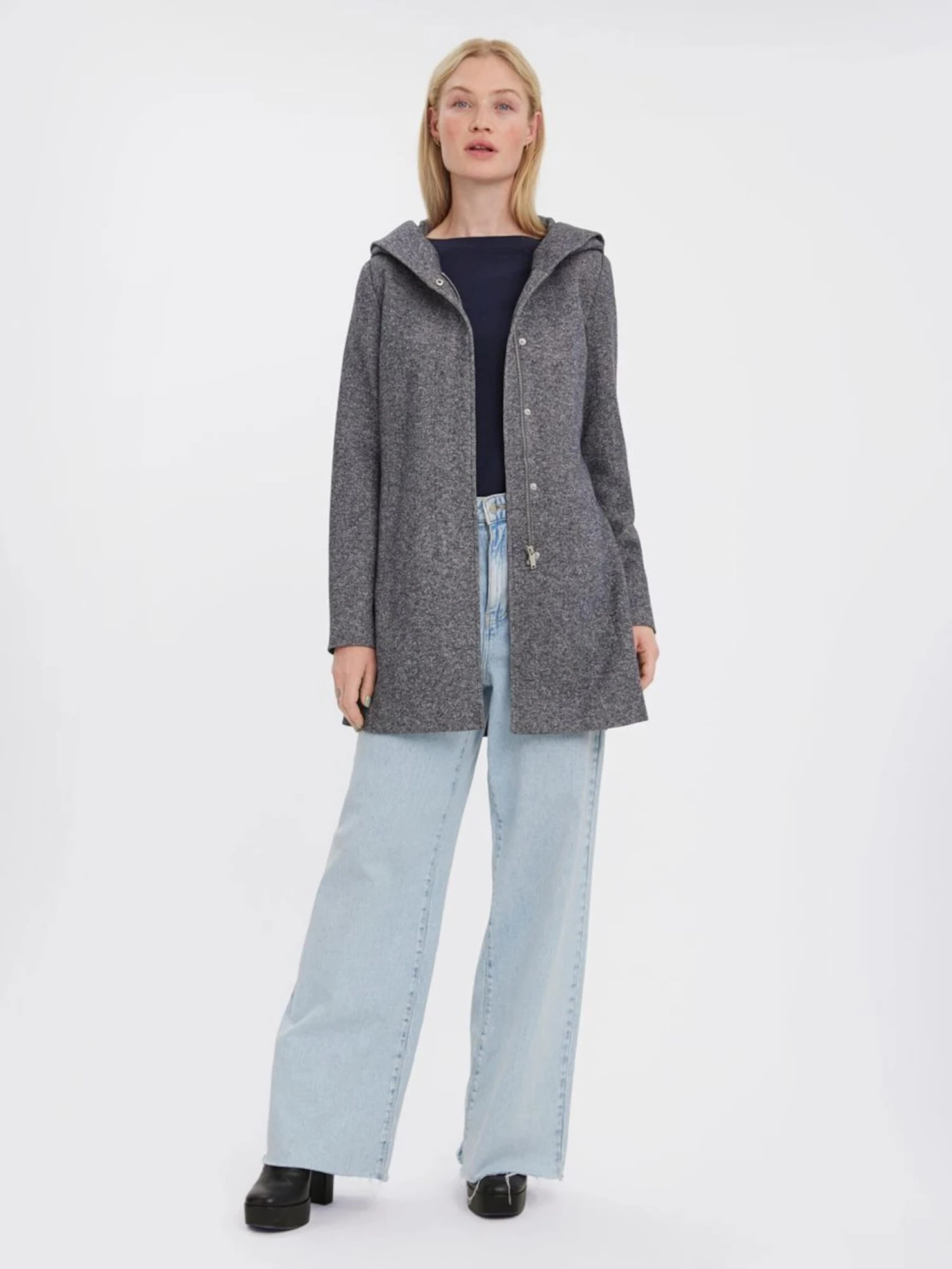 MélangeDrukknopenVerborgen ritsZakken aan de zijkantOp staal nadenVoelt zacht aanLicht gevoerdRitssluiting