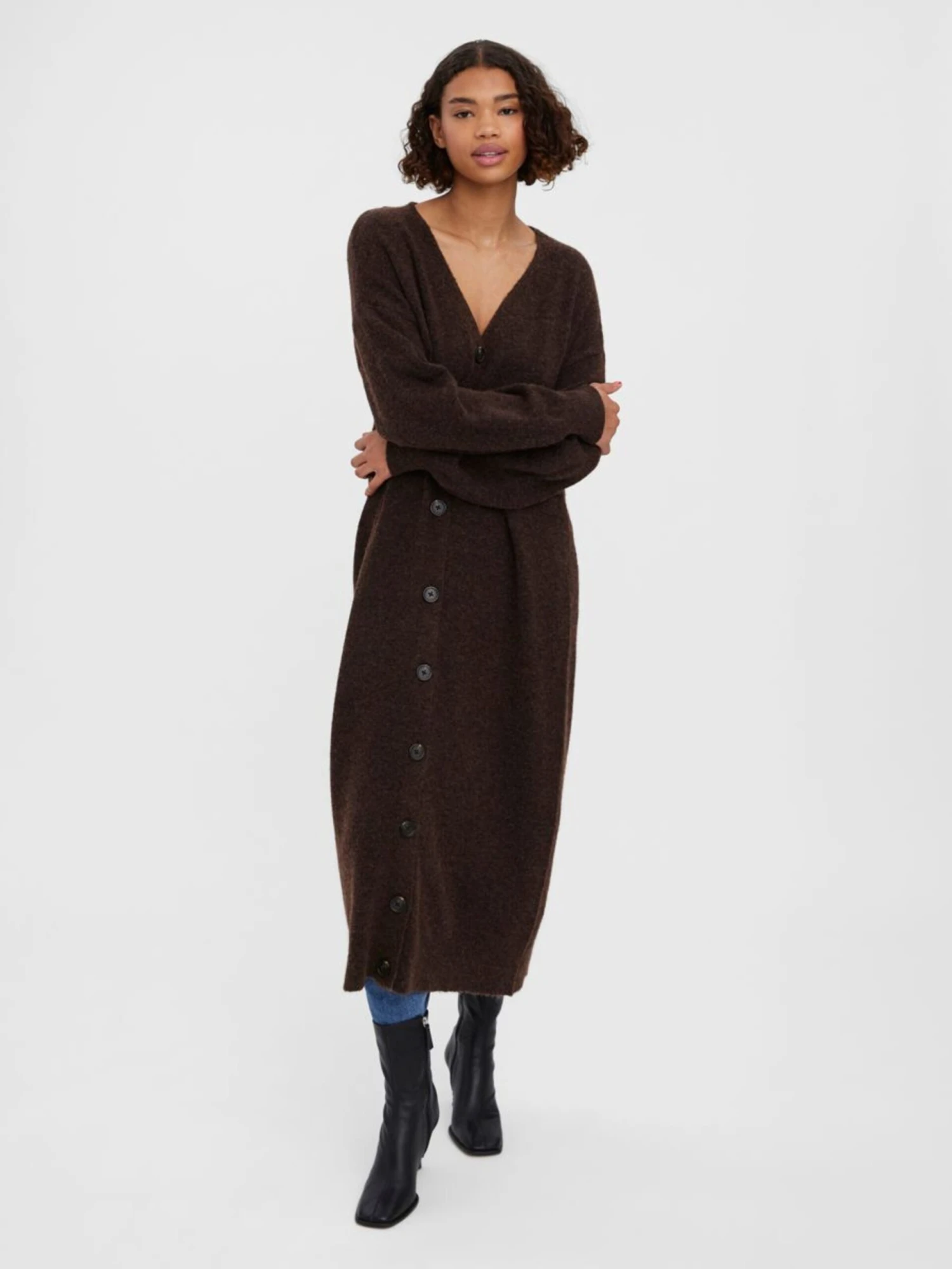 MélangeV-halsGeribd ceintuurtjeOvercut schouderMet textuurVoelt zacht aanKnoopsluitingGerecycled polyester