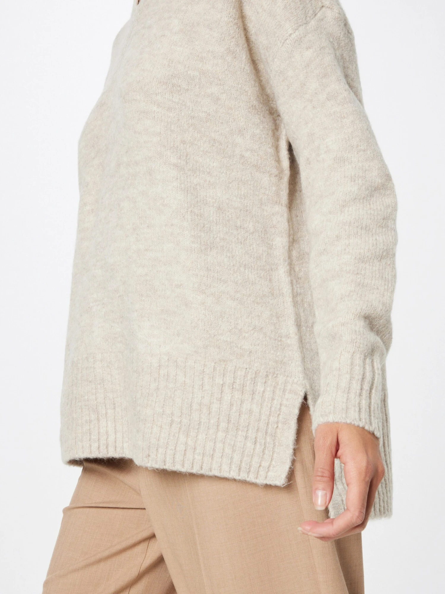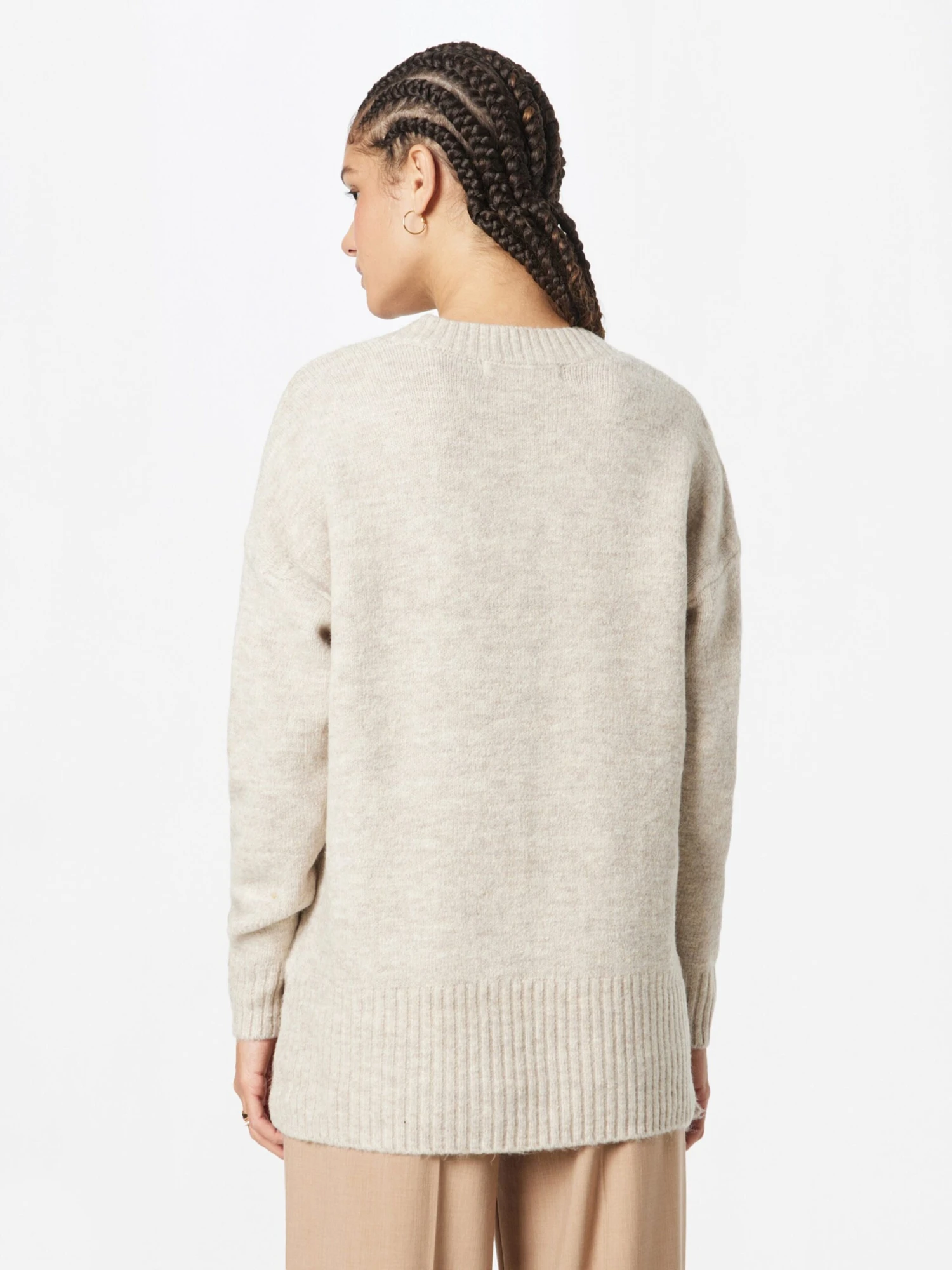 MélangeV-halsGeribbelde kraagGeribd ceintuurtjeZijdelingse inkepingenOvercut schouderVerlengd rugpandFully fashionedMet textuur
