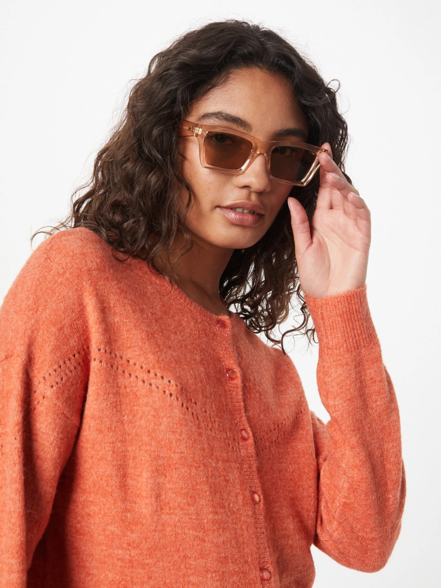 MélangeRonde halsMeshRechte zoomGeribd ceintuurtjeFully fashionedMet textuurVoelt zacht aanKnoopsluiting
